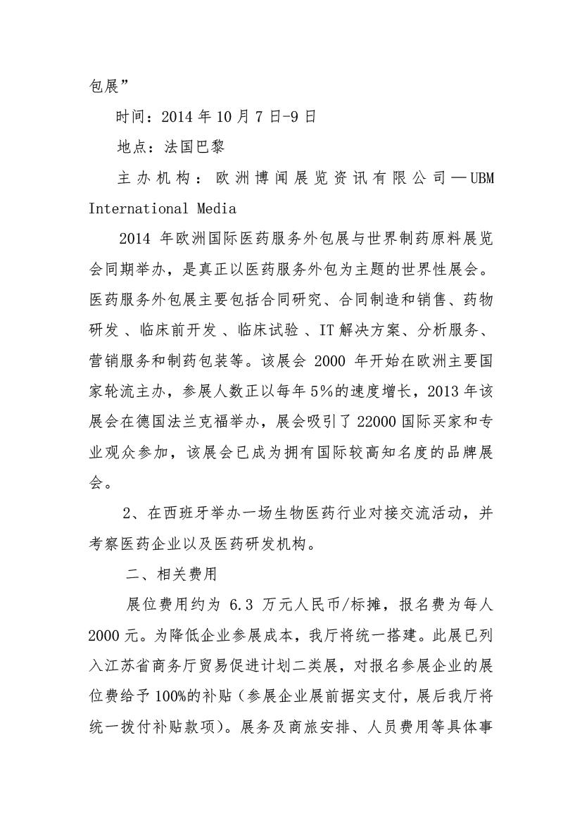 關于組團參加法國國際醫(yī)藥服務外包展并赴西班牙進行醫(yī)藥外包市場開拓活動的通知